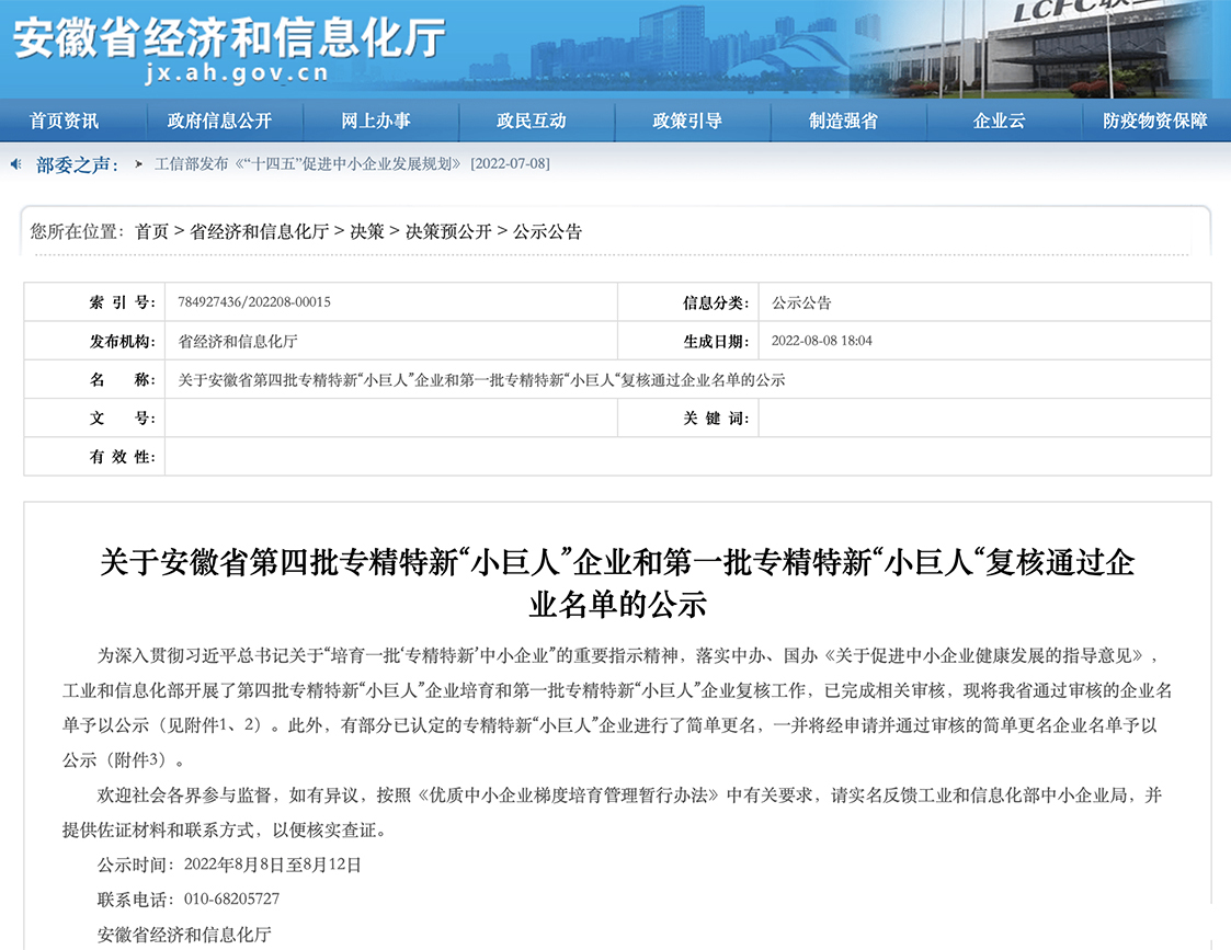 近日,經(jīng)國家工業(yè)和信息化部的審核批準,安徽省經(jīng)濟和信息化廳發(fā)布《關于安徽省第四批專精特新“小巨人”企業(yè)名單的公示》,安徽德科電氣科技有限公司榮膺入選,榮獲國家級專精特新“小巨人”稱號。