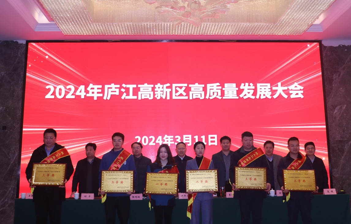 會上宣讀了2023年度廬江高新區高質量發展相關獎項,德科電氣榮獲《2023年度廬江高新區規上工業企業高質量發展一等獎》。縣領導為各獲獎企業頒獎并表示祝賀,同時勉勵企業2024年再創佳績。
