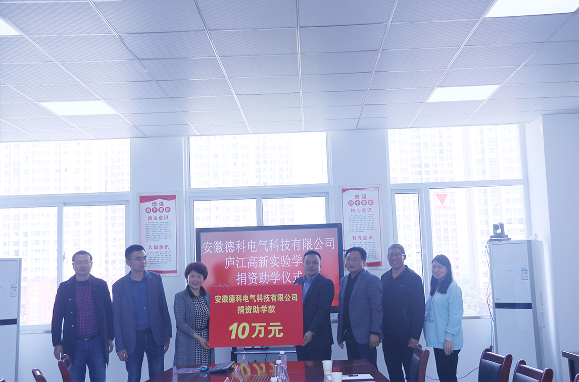 2024年4月10日安徽德科電氣科技有限公司愛心回饋社會,向廬江高新實驗學校捐贈10萬元“助學金”。這筆資金將用于改善學校的教學設施和提升教育質量,助力更多學生實現夢想。