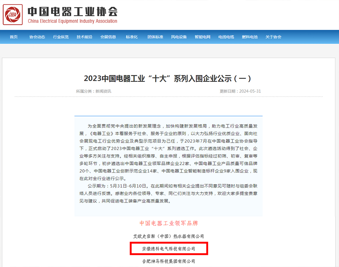 為全面貫徹黨中央提出的新發(fā)展理念,加快建構(gòu)新發(fā)展格局,助力電工行業(yè)高質(zhì)量發(fā)展,2023年7月,《電器工業(yè)》在中國電器行業(yè)協(xié)會指導(dǎo)下,正式啟動2023年中國電器行業(yè)“十大”系列遴選工作。經(jīng)過初篩、初審、復(fù)審等多輪環(huán)節(jié),德科電氣成功入選“中國電器工業(yè)領(lǐng)軍品牌”名單。