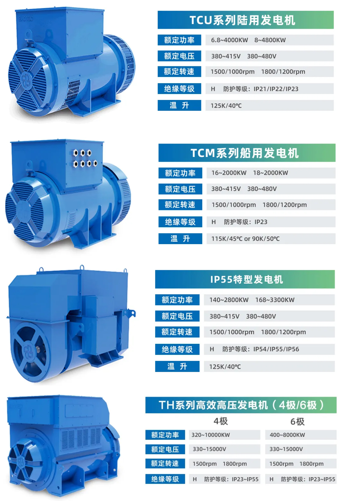 德科電氣通過了ISO9001質量體系、ISO14001環境管理體系和ISO45001職業健康安全管理體系認證,產品功率涵蓋6.8~10000KW,電壓110V~15000V,頻率50Hz/60Hz,防護等級IP21~IP57。產品獲得歐盟CE認證和中國船級社(CCS)認證,符合國內和國際標準,可滿足全球用戶不同的電力需求。