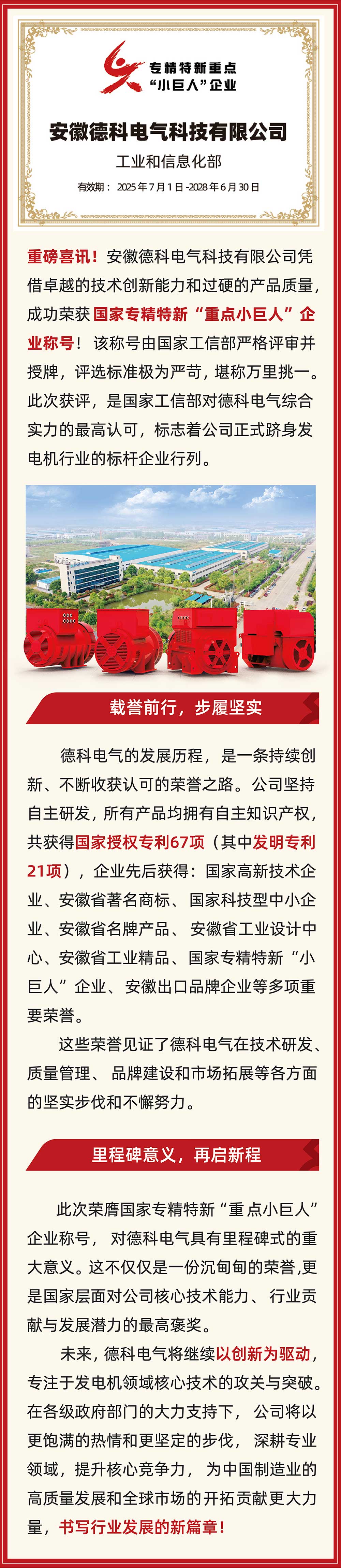 「小巨人 大分量」| 德科電氣榮獲“國(guó)家專精特新重點(diǎn)小巨人企業(yè)”稱號(hào)!