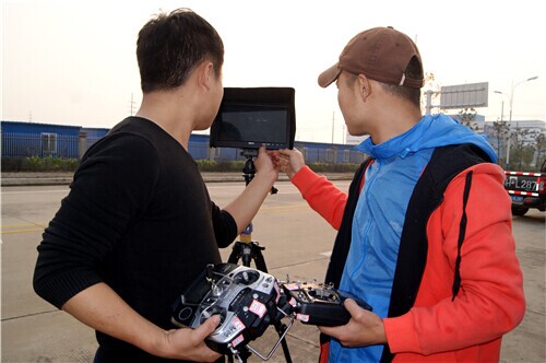 地面上,安徽海臻天文化傳媒的技術人員熟練地操控著遙控器,遙控飛機上裝載著高清攝像機,地面設有視頻終端,顯示器里正在直播航拍的圖像。無人機“聽話”地攀升著,在上百米的高度懸停,“俯拍”著德科電氣廠區及整個廬江城西開發區。