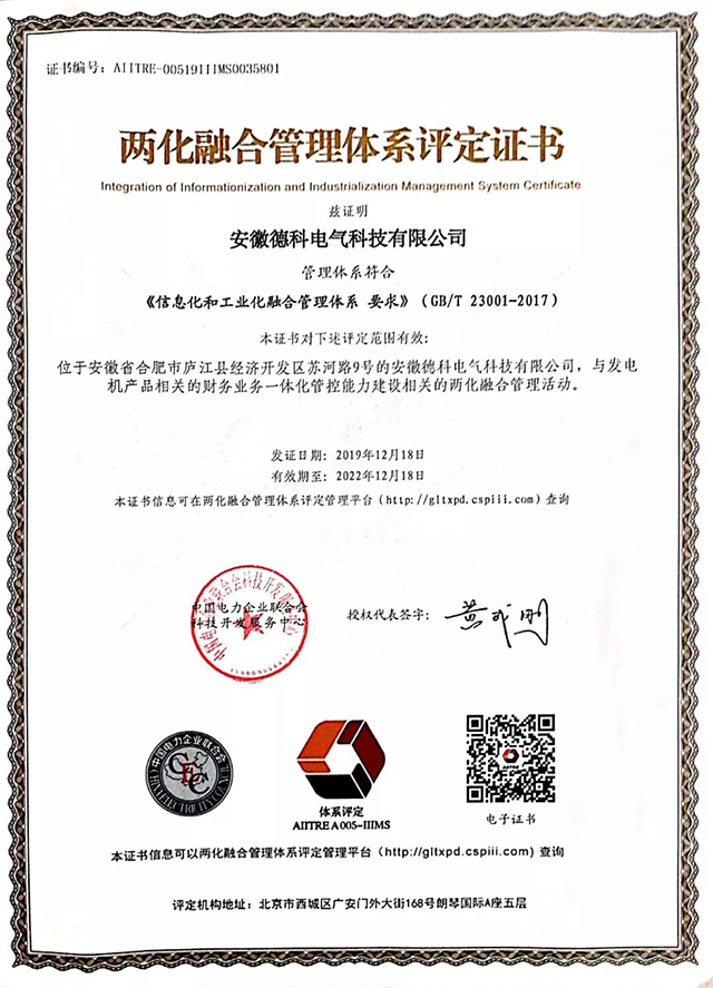 五、德科發電機生產車間獲評為合肥市數字化車間